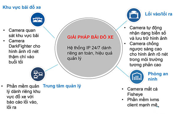 Hệ thống camera giám sát quản lý bãi đỗ xe – Hệ thống camera giám sát quản lý bãi đỗ xe là giải pháp tổng thể bao gồm phần cứng, phần mềm điều khiển tự động, các trang thiết bị an ninh, camera theo dõi, trạm giám sát nhằm trang bị cho một bãi đỗ xe cỡ vừa và lớn.